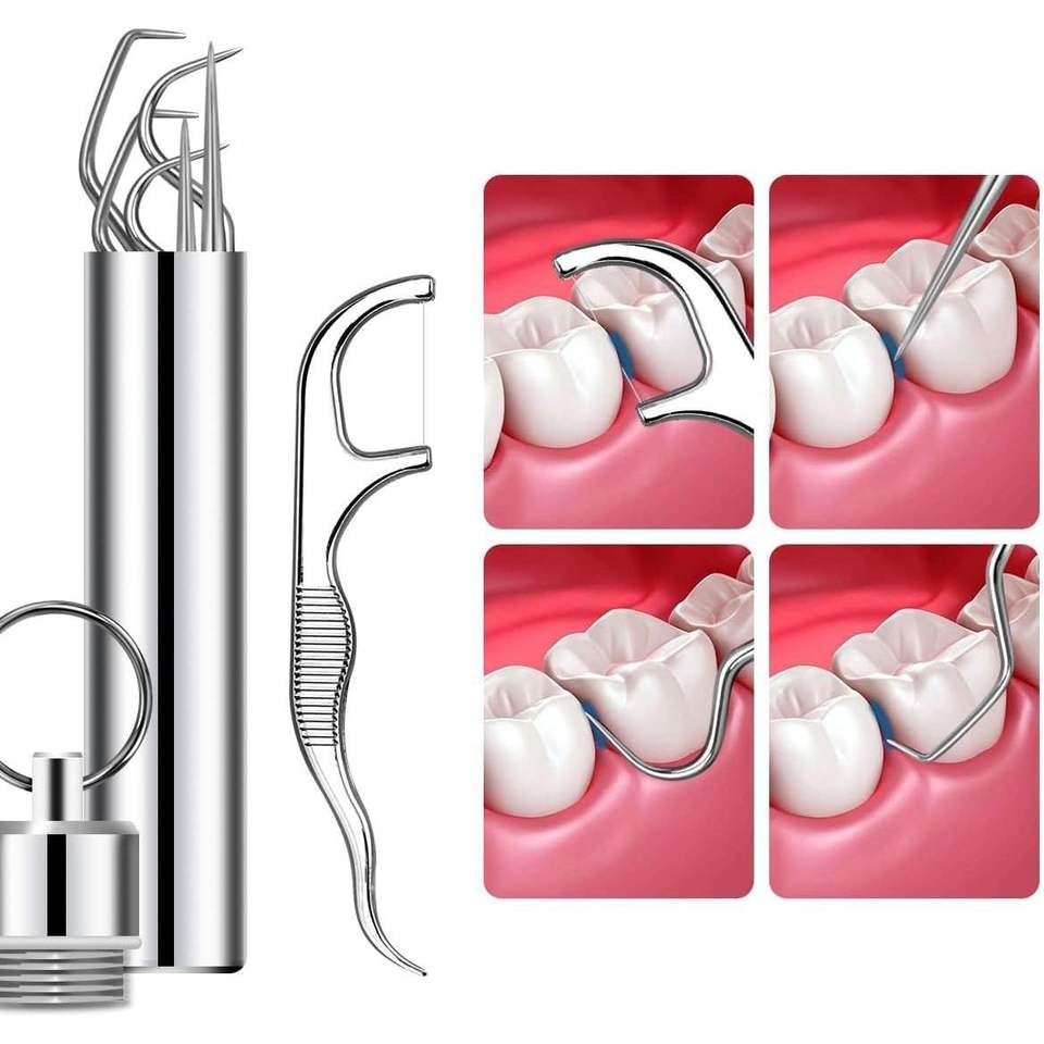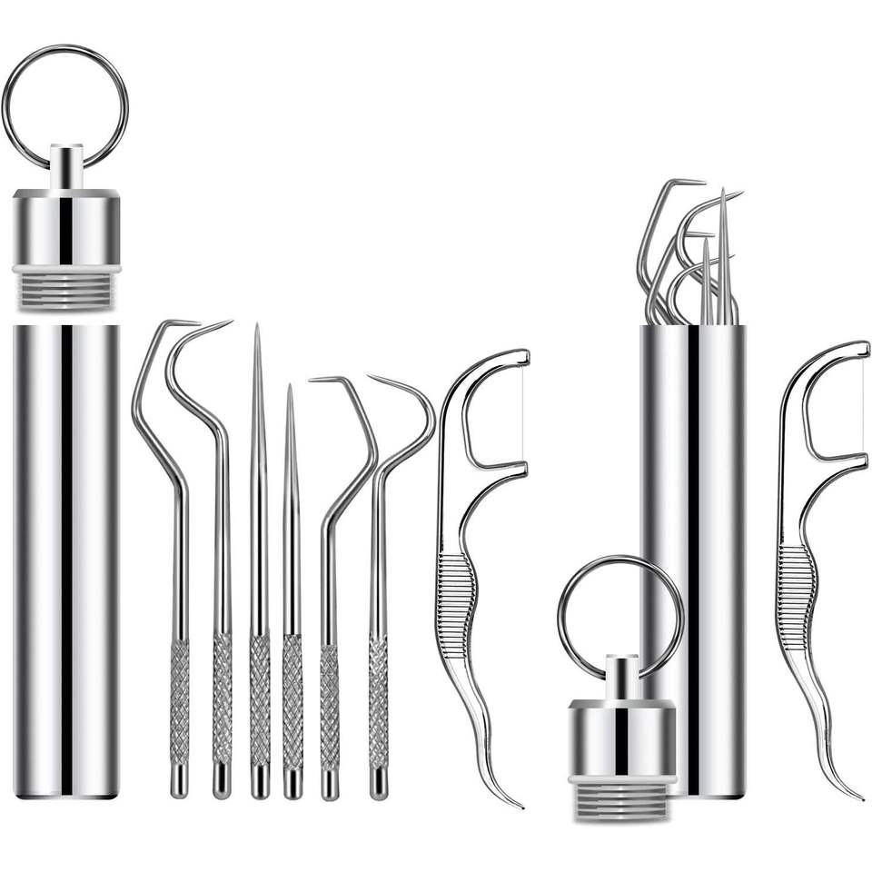 Juego de 7 Palillos de Dientes Portátiles de Acero Inoxidable, Reutilizables, con Estuche Metálico para Limpieza, Ideal para Picnics y Camping al Aire Libre