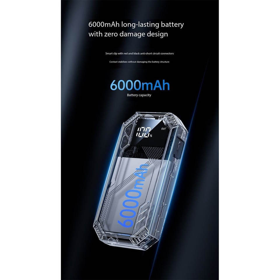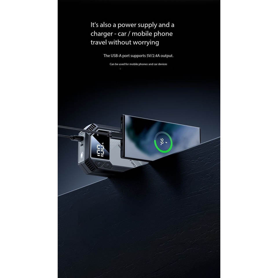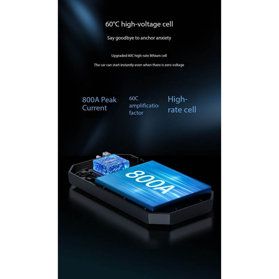 Portable 800A Peak Car Jump Starter, Banco de energía de 6000mAh, protección inteligente, LCD, linterna-Todos los modelos de teléfono