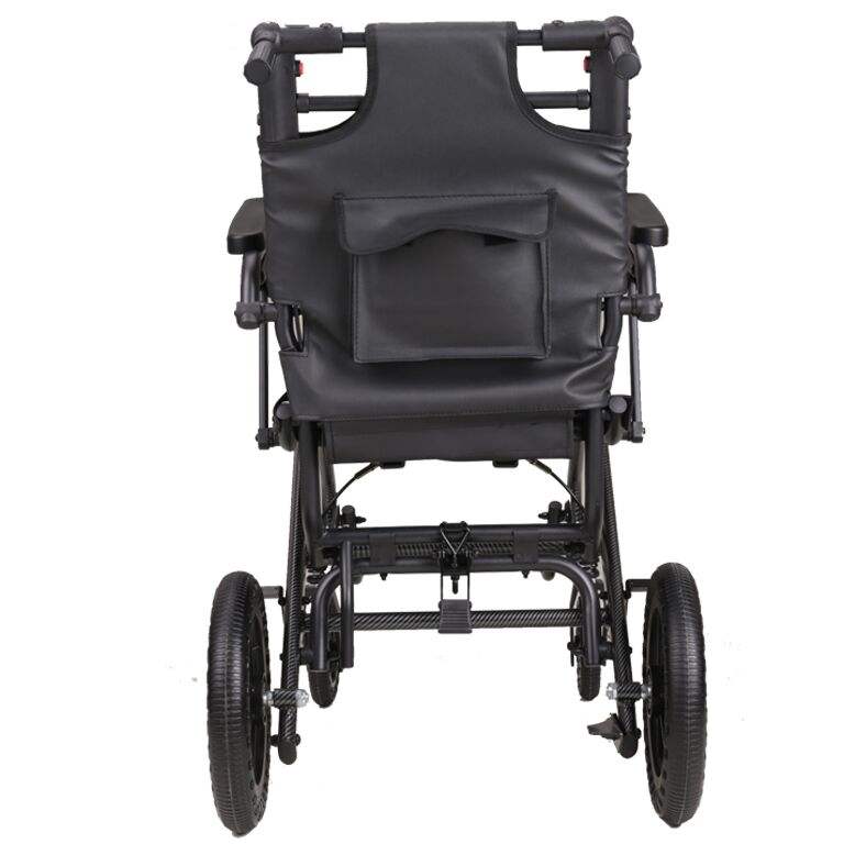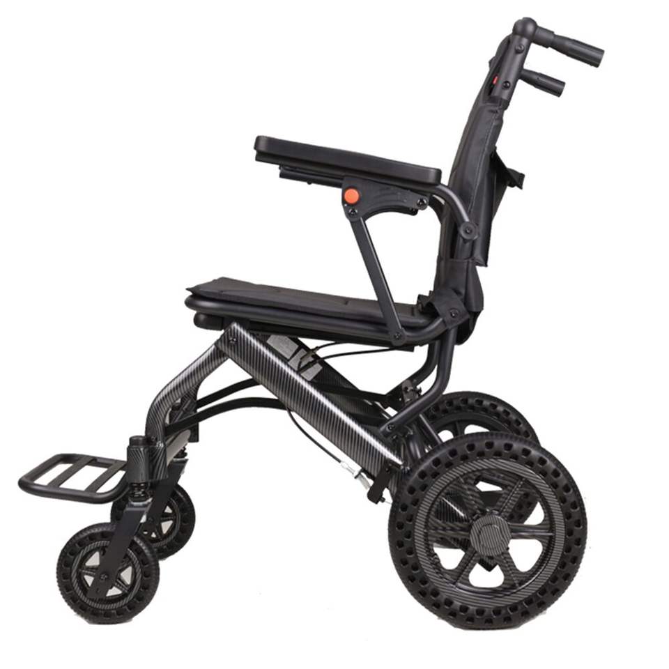 Silla de ruedas manual de aluminio portátil 9,9 kg ligera de fácil viaje con patrón de fibra de carbono