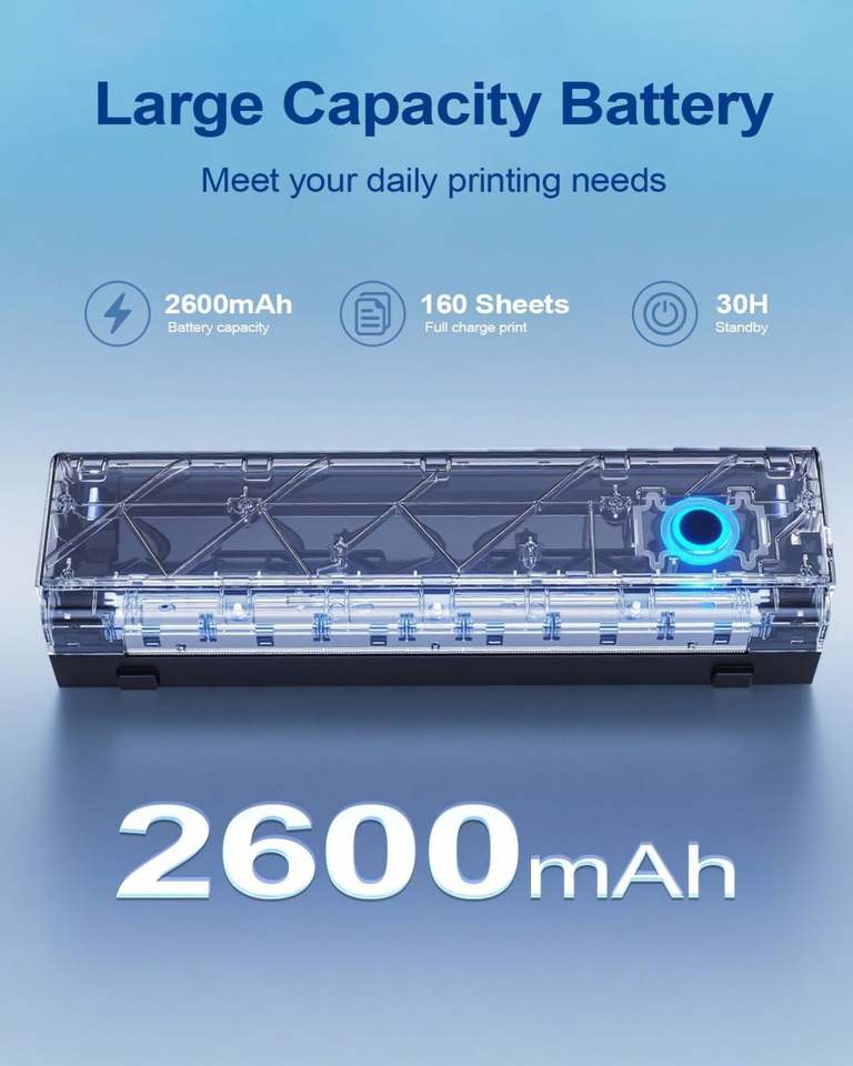 Impresora Térmica Portátil A4, Rollo de Papel de 216 mm, 203 dpi, Batería de 2600 mAh, 1 Año de Garantía, para Uso Inalámbrico en Viajes, Jiuyin