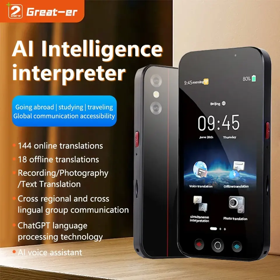 Dispositivo de Traducción de Idiomas Inteligente con Voz y IA Portátil, con 144 Idiomas, Foto, WiFi, Traductor en Tiempo Real, Enlace ChatGPT para Viajes