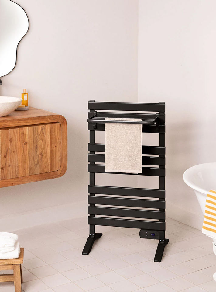Radiador de toallas de aluminio portátil Calentador de toallas eléctrico con 8 horas de sincronización para baño montado en la pared o independiente