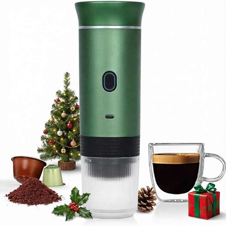 Cafetera Espresso Automática Portátil Mini, Cafetera Autocalentable de 60 ml, Funciona con Batería, Compatible con Cápsulas de Café Molido