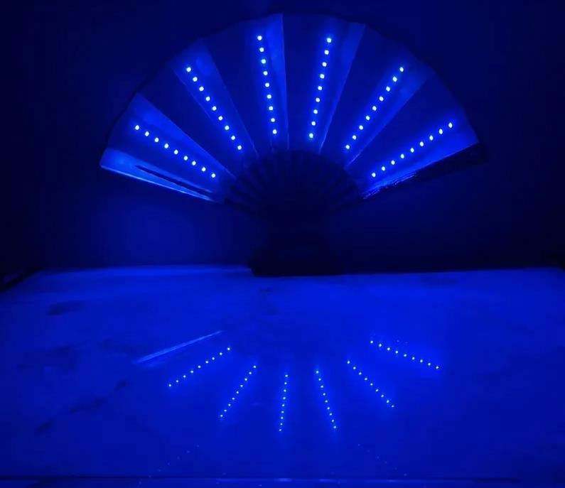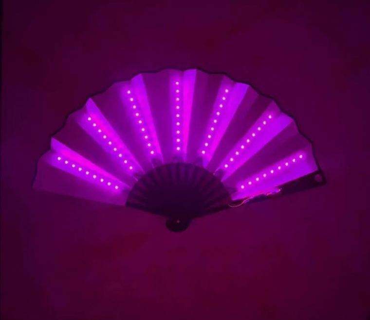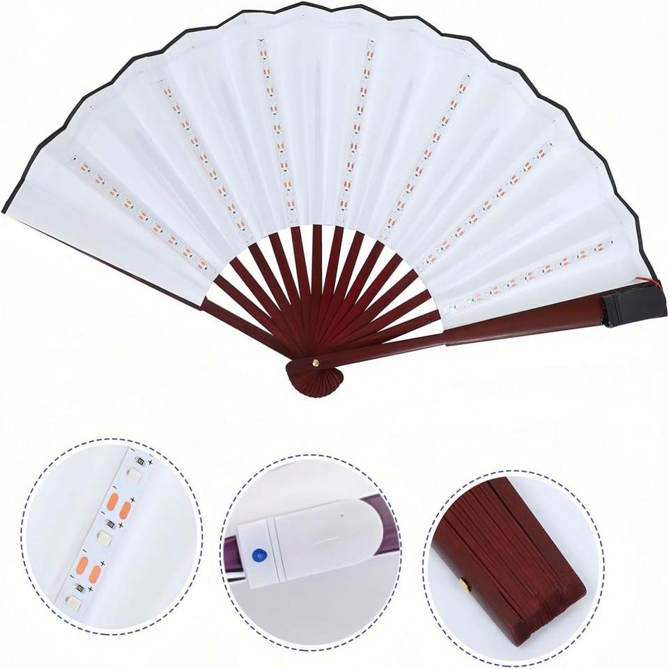 Ventilador Plegable LED Portátil a Pilas con Luz, Accesorios Luminosos para Espectáculos Nocturnos, Discotecas, Arte Popular, Manualidades, Publicidad DIY