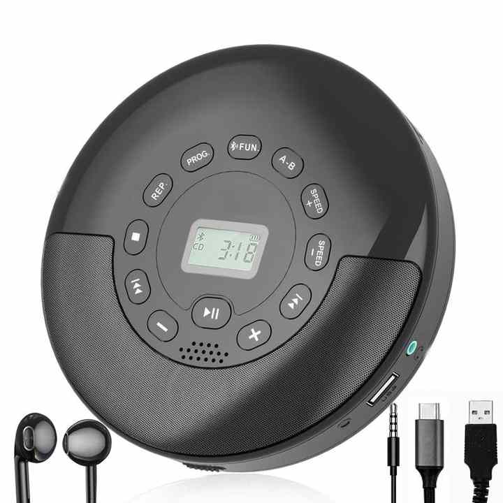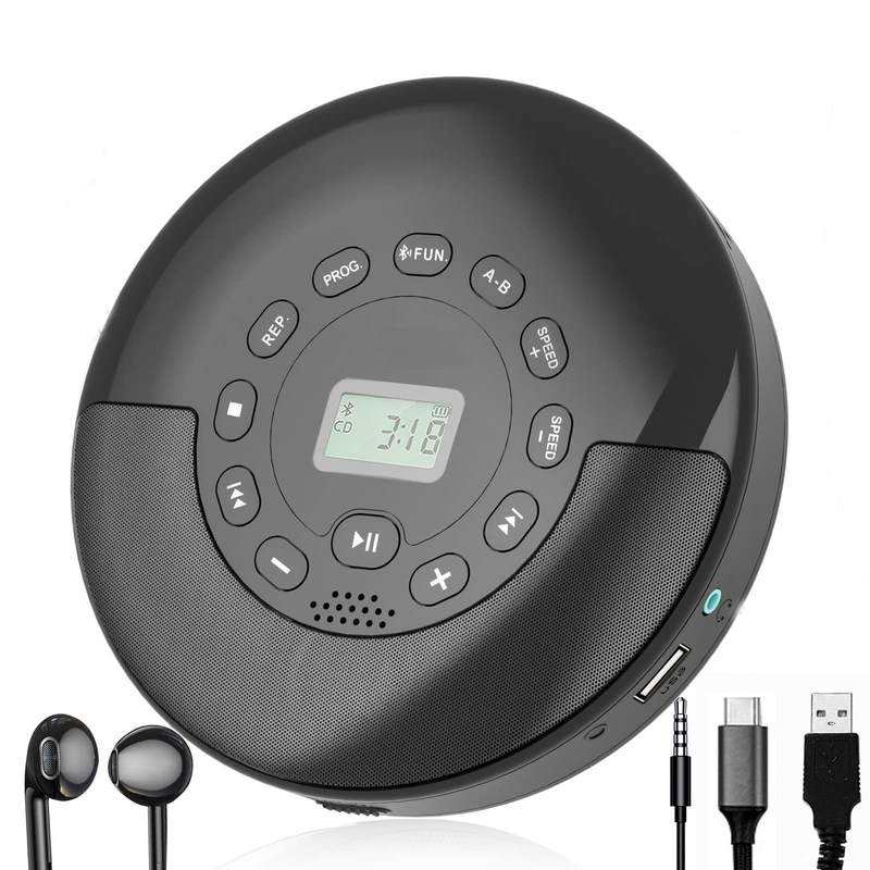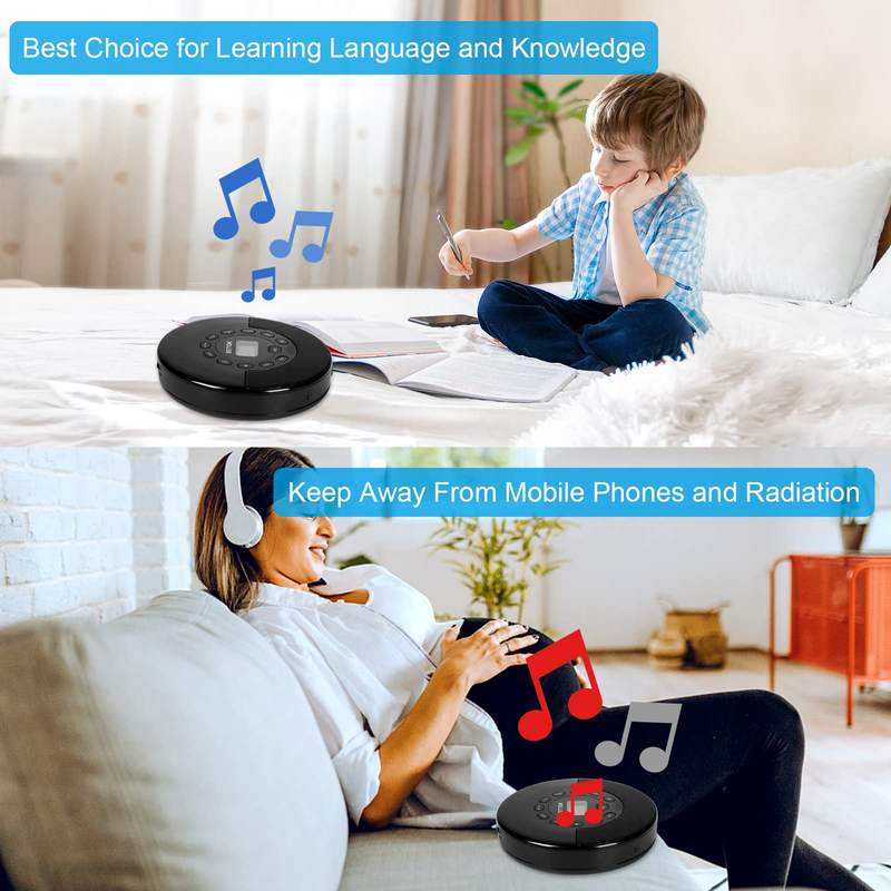 Reproductor de CD Bluetooth Portátil Recargable con Altavoces Integrados, Compatible con MP3 y WMA, para Aprender Inglés, Viajes, Audio Estéreo, Reproductor de Música