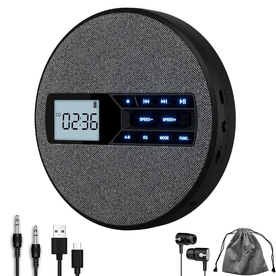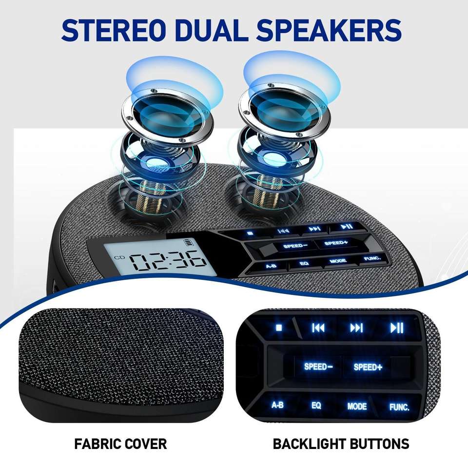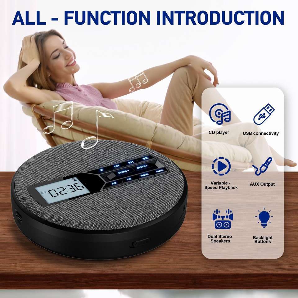 Reproductor de CD Portátil con Bluetooth y Altavoces Dobles, Máquina de Aprendizaje de Idiomas, Compatible con MP3, Puerto USB/AUX, Pantalla LCD