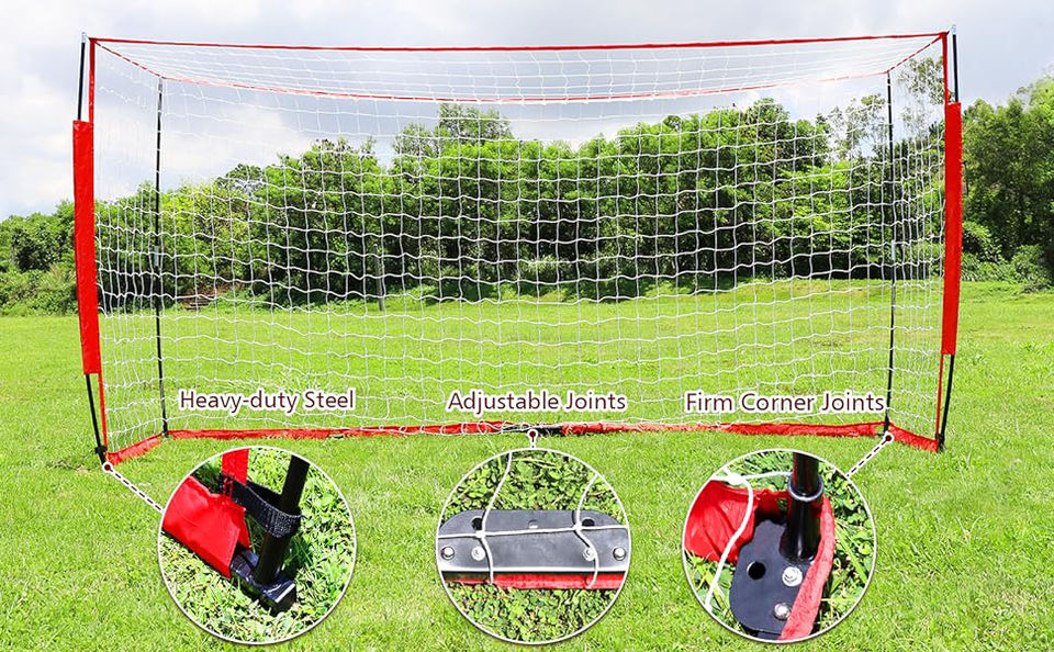 Red de Fútbol Portátil Tipo Arco con Base de Metal, Postes Verticales de Fibra de Vidrio Resistentes, Instalación Rápida y Fácil Plegado para Almacenamiento