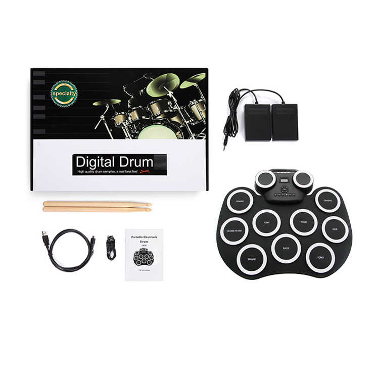 Gift box pacakge: 1 * iWord Electronic Drum (9 Pads), 2 * Drum Sticks, 1 * Pedal Set