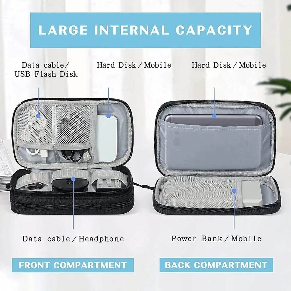 Organizador de Cables Portátil, Bolsa de Almacenamiento Impermeable para Banco de Energía, Estuche para Cables Digitales, Estuche para Auriculares de Tela Oxford