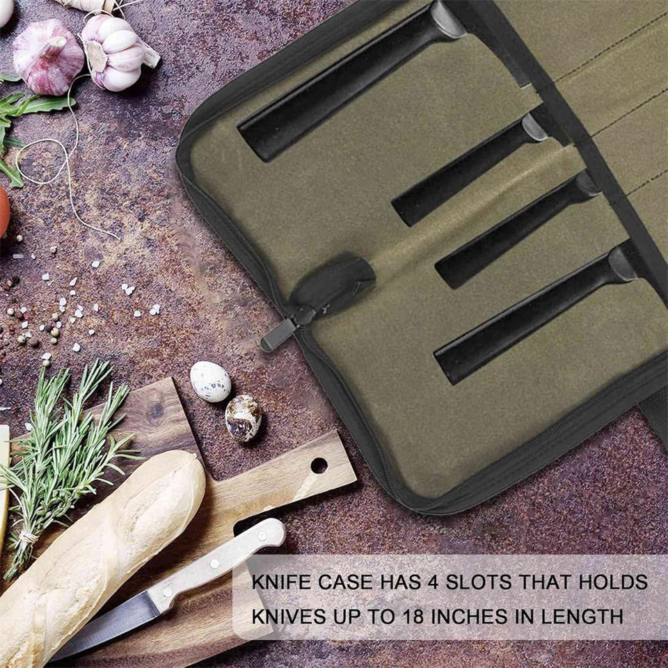 Bolsa de Almacenamiento Portátil para Cuchillos de Chef, de Lona, Color Verde Militar Caqui, con Cierre, para Acampar al Aire Libre
