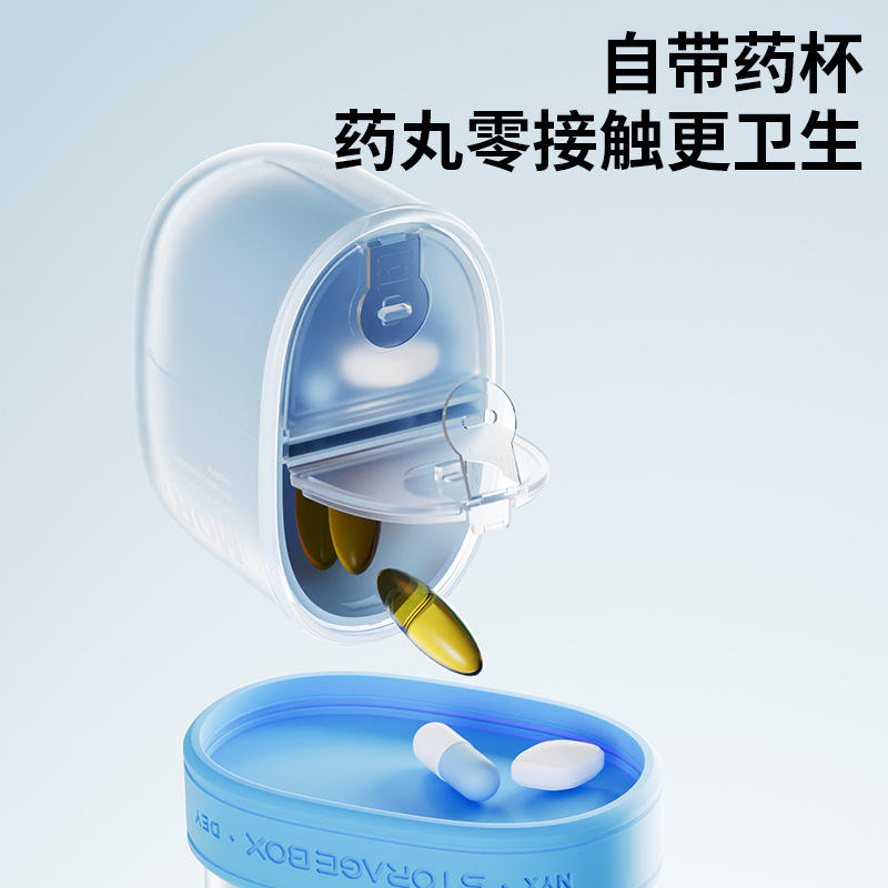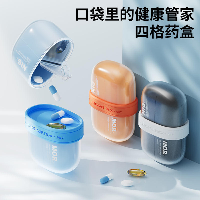 Portable Capsule Pillbox 4 Compartments Removable Sealable Medicine Storage Case Dark Night Black Ice Lake Blue Coral Orange