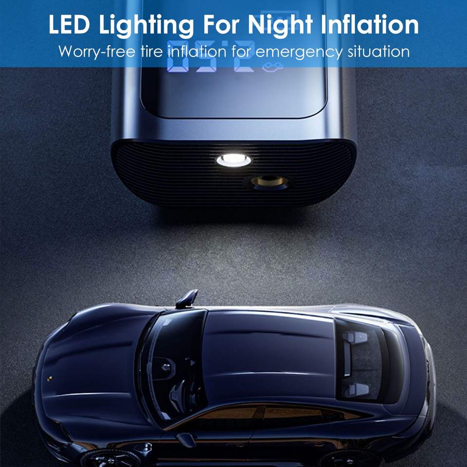 Compresor de Aire Portátil para Auto con Luz LED, Inflador de Neumáticos Eléctrico con Cable para Vehículos