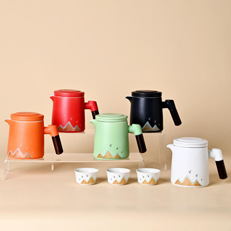 Juego de té portátil de cerámica con tapa y filtro, 4 piezas, tetera y tazas de porcelana para viajes al aire libre, nuevo estilo chino