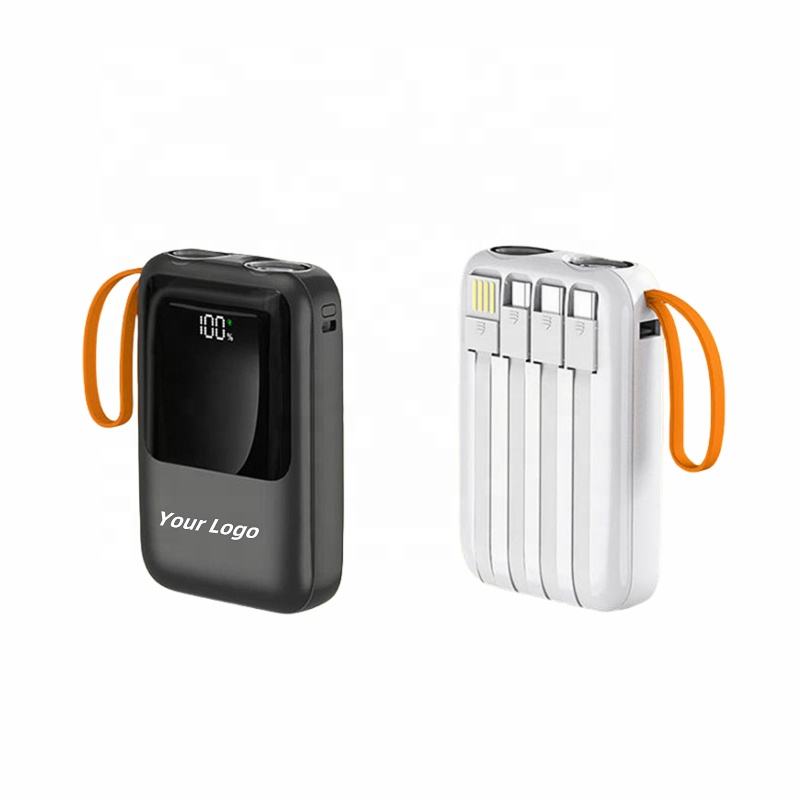 Cargador portátil Power Bank con 4 cables integrados 10000mAh Cargador de teléfono duradero de carga rápida con pantalla LED Linterna dual