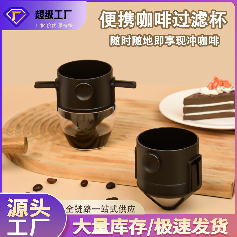 Taza de café portátil con filtro de acero inoxidable 304 para viajes, taza caliente, color negro
