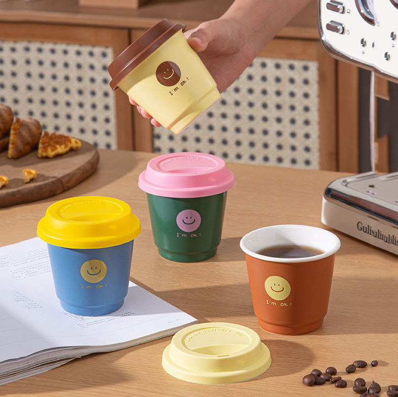 Taza de Café Portátil para Llevar, Tazas Reutilizables, Mini Taza de Viaje de Cerámica con Tapa