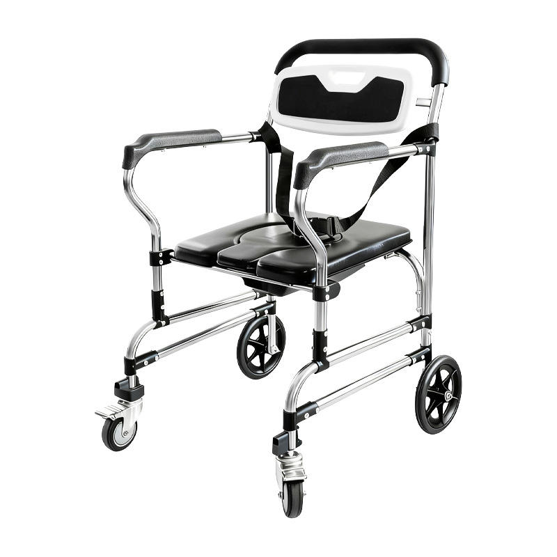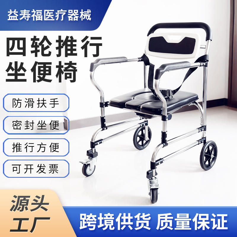 Silla de inodoro portátil de acero inoxidable con cuatro ruedas para uso hospitalario en ancianos, asiento de inodoro multifuncional