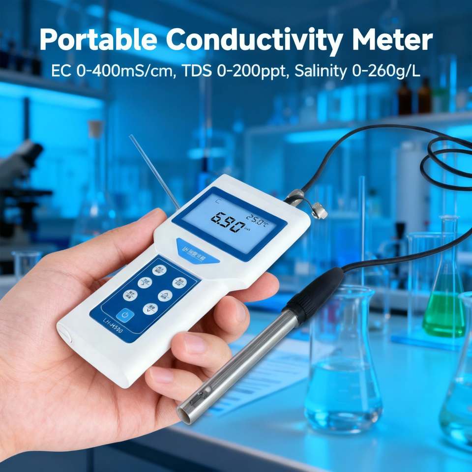 Medidor de Conductividad Portátil, Medidor de Detección de Salinidad EC TDS para Agua Ultrapura, para Uso Químico, Farmacéutico y Educativo