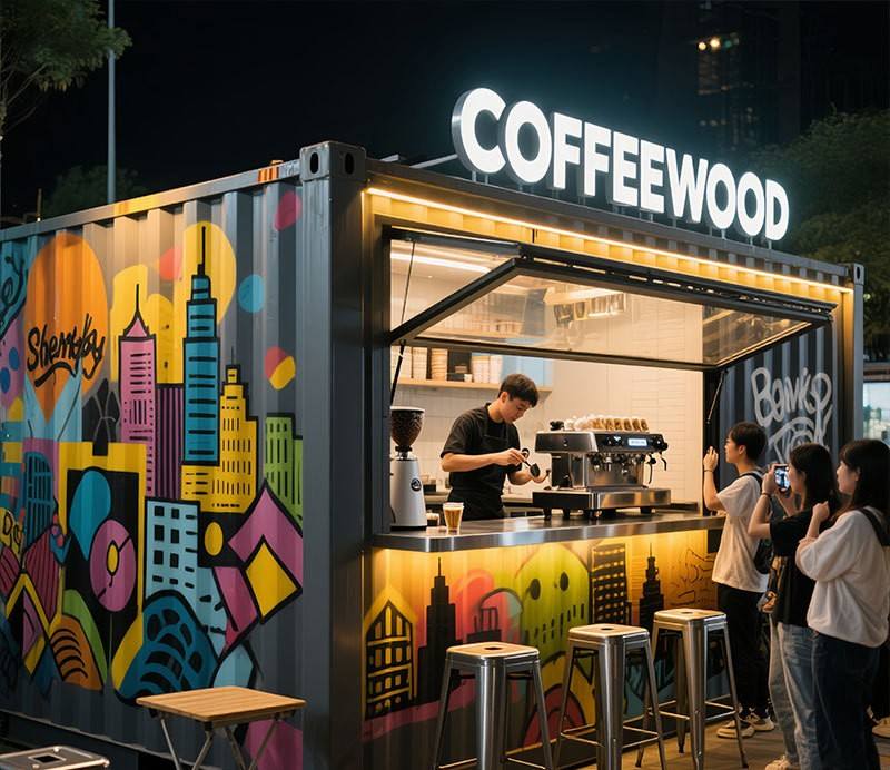 Casa Contenedor Prefabricada Comercial Portátil y Contemporánea, Panel Sándwich de Acero, Tienda Emergente Personalizada, Cafetería, Bar de Aperitivos al Aire Libre