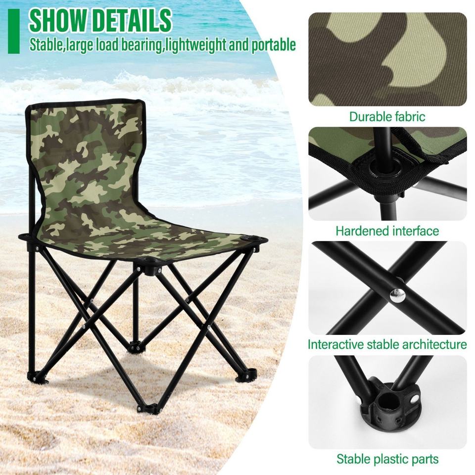 Silla Plegable Portátil con Diseño de Camuflaje Personalizado para Jardín, Playa, Pesca y Actividades al Aire Libre
