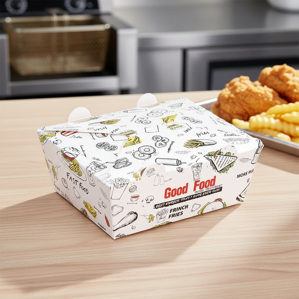 Cajas de Papel Portátiles Personalizadas de Grado Alimenticio para Comida Rápida para Llevar, Empaque para Hot Dogs, Pollo Frito y Hamburguesas