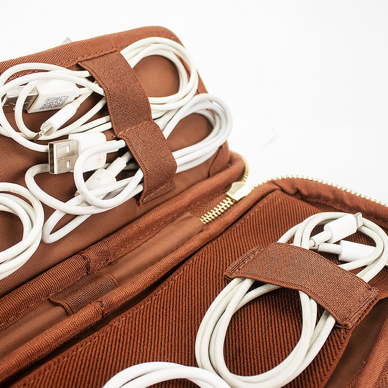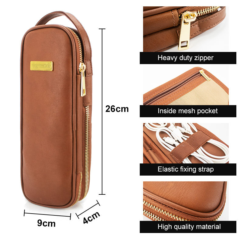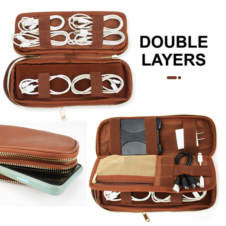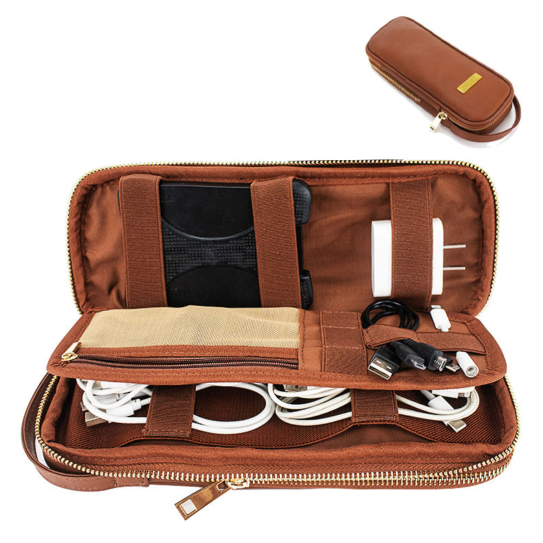 Portátil logotipo personalizado viaje Cable accesorio almacenamiento organizador bolsas cuero genuino Tech Kit bolsa