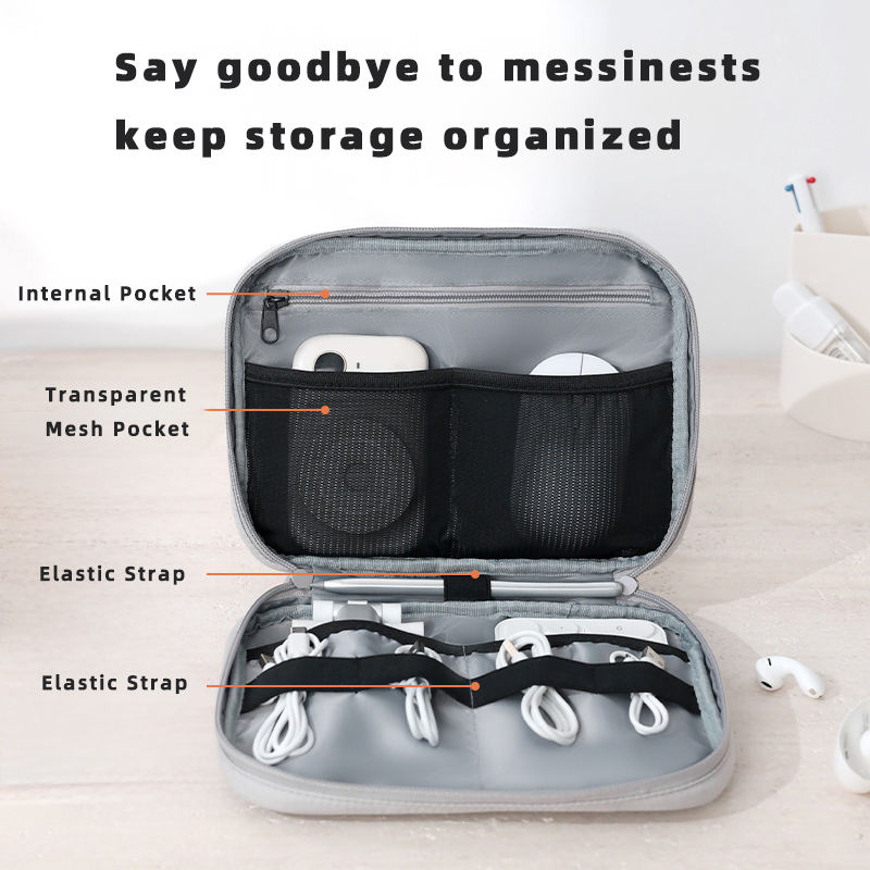 Bolsa de almacenamiento de accesorios digitales portátiles con compartimentos Organizador electrónico para banco de energía de cable de datos
