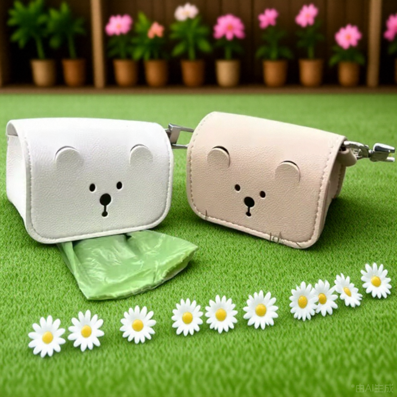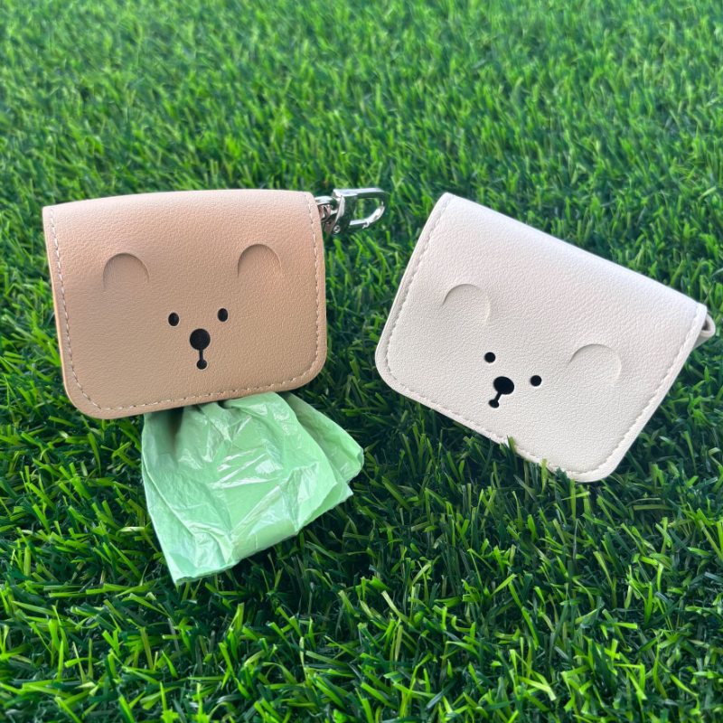 Dispensador portátil de bolsas para recoger caca de perro, bolsas de basura para cachorros con forma de oso bonito, Mini bolsa de basura para mascotas, soporte para mascotas para caminar al aire libre