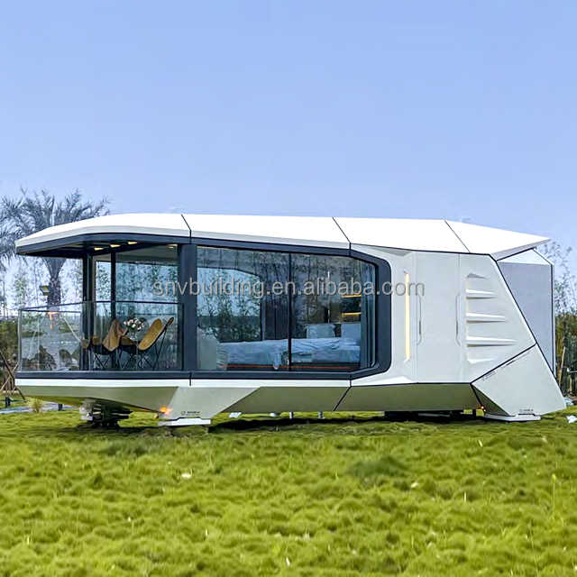Casa pequeña modular portátil de dos pisos con cabina de acero prefabricada de lujo Concepto de cápsula espacial para piscina al aire libre ecológica