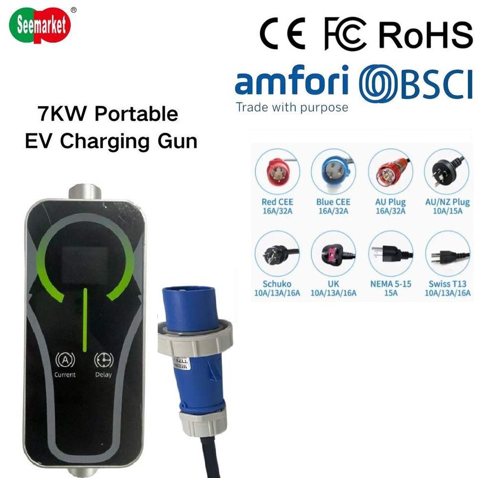 Estación de Carga Portátil para Vehículos Eléctricos, Enchufe Tipo 2, Potencia de Salida de 7 kW, 32 A, IP66, Control por Aplicación, Cable de Carga para Vehículos Eléctricos, Nuevo, Garantía de 3 Años