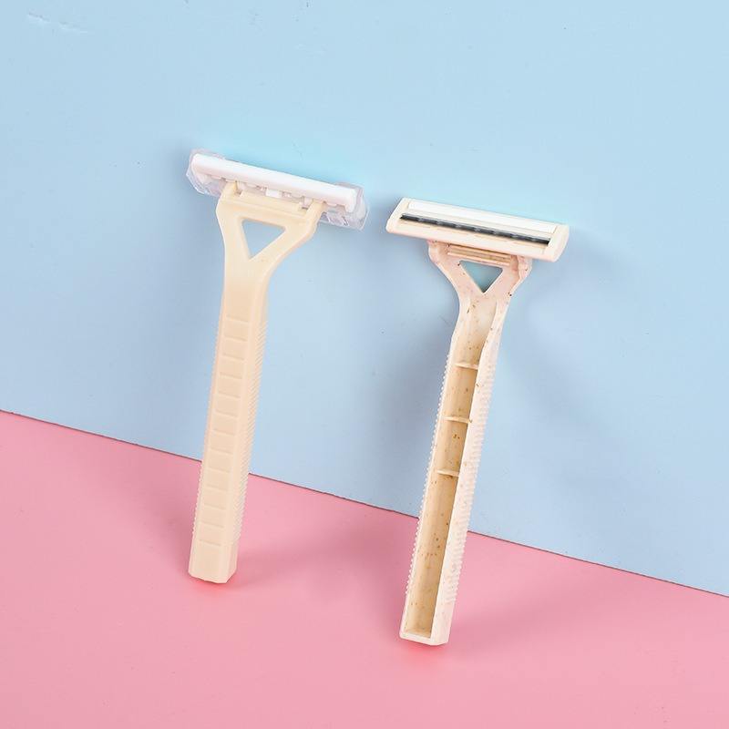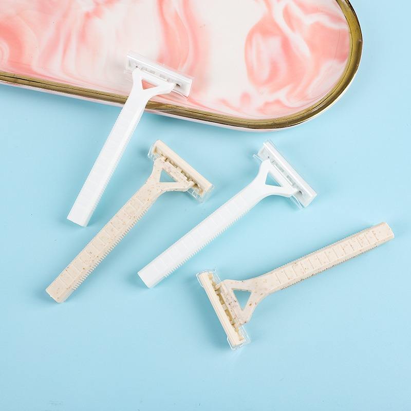 Kit de maquinilla de afeitar desechable ecológica portátil para comodidades de hotel respetuoso con el medio ambiente dos cuchillas de acero inoxidable hechas con paja