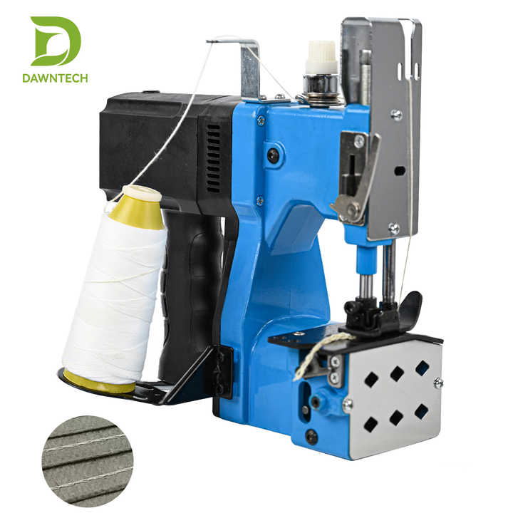 Máquina de coser portátil eléctrica para sellar bolsas de papel kraft tejido, de uso industrial.