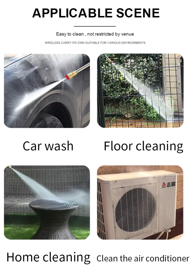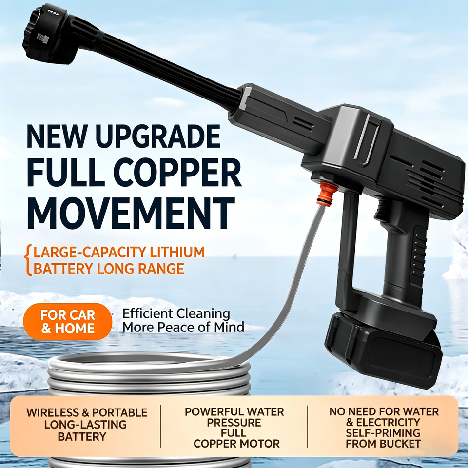 Hidrolavadora Inalámbrica Portátil con Batería Eléctrica, Pistola de Agua Automática de Alta Presión, Lavadora de Autos 5 en 1 con Boquilla, Lavadora a Presión sin Cable