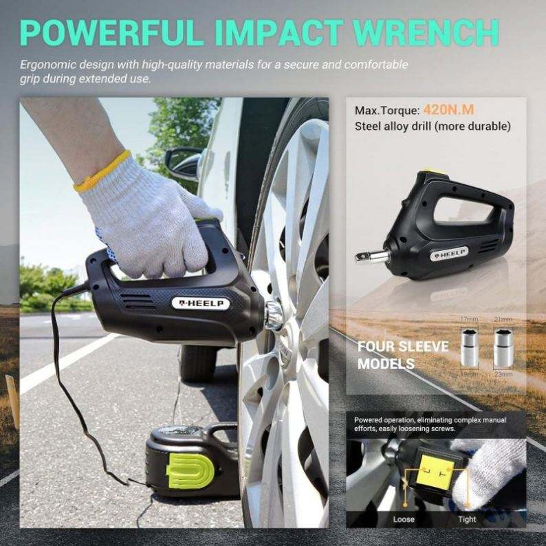 Kit de gato de coche eléctrico portátil 5T 12V gato de Neumático Hidráulico bomba de aire de doble cilindro pantalla táctil LCD modelo de llave de impacto