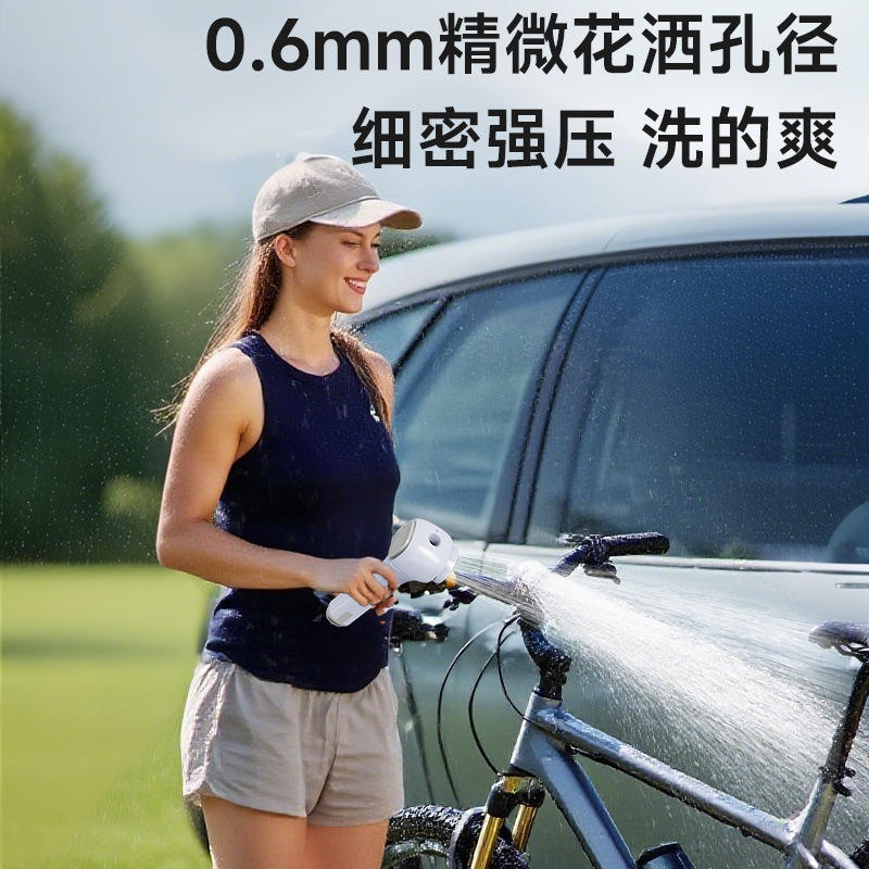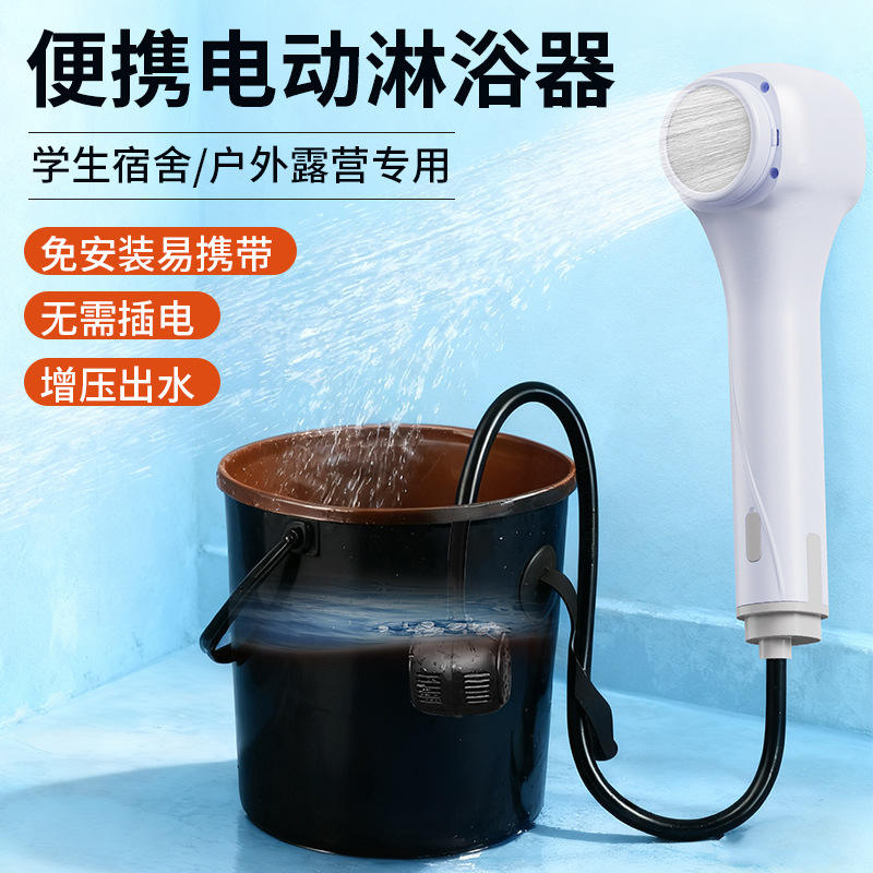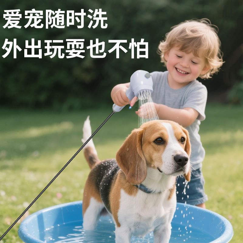 Cabezal de ducha eléctrico portátil recargable para mascotas y uso doméstico, material ABS blanco y morado, diseño de cuerpo recto multifunción