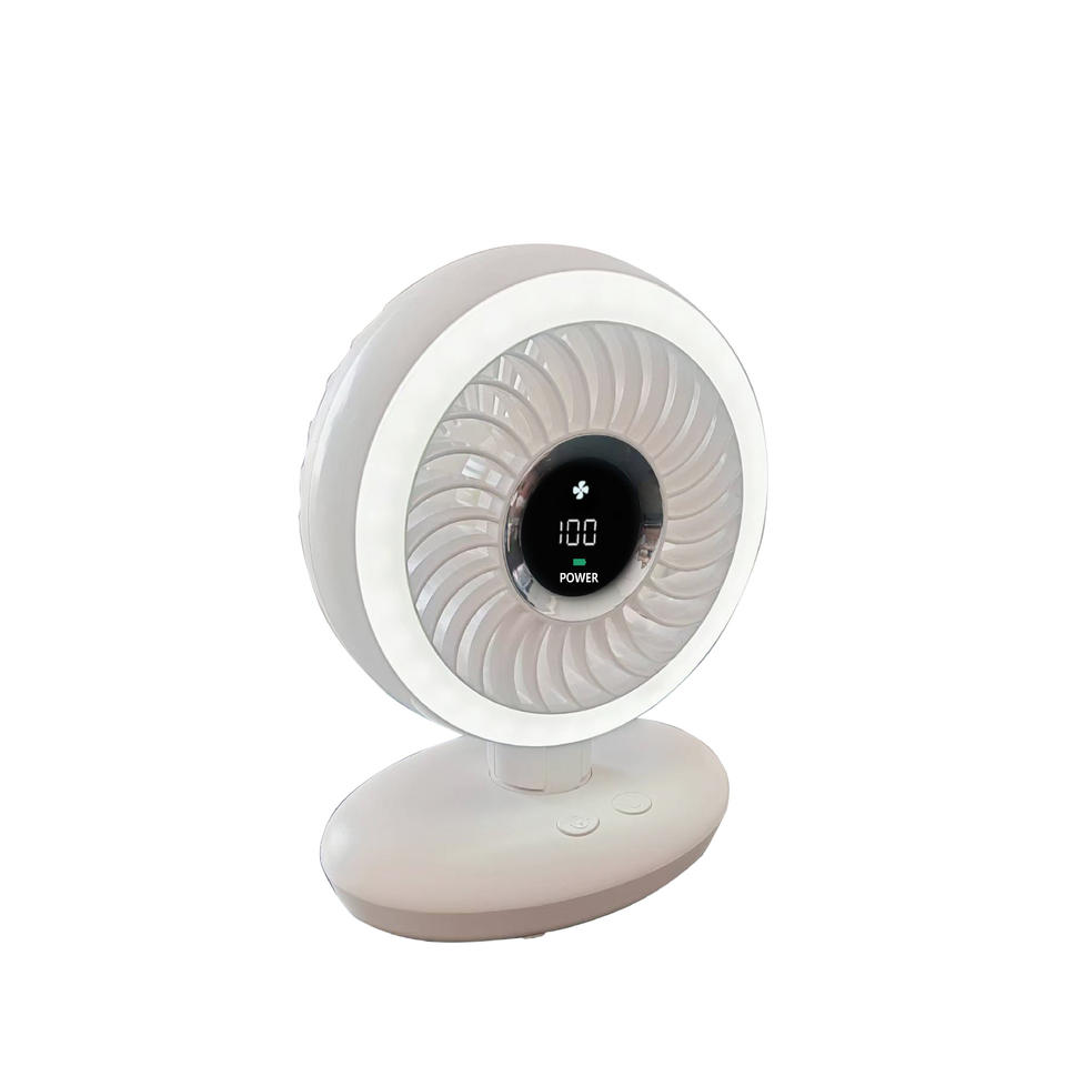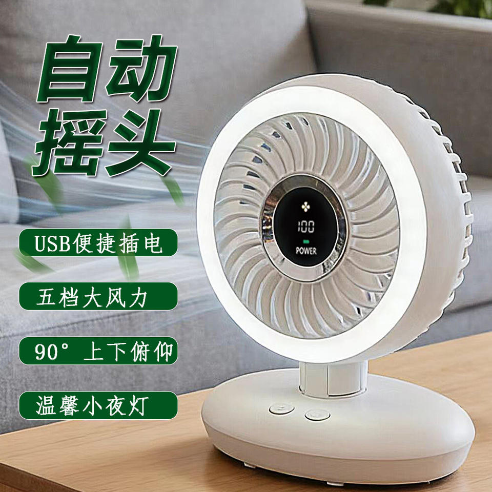 Ventilador portátil con luz LED, recargable por USB, 3-6 horas de duración de batería, motor de CC oscilante, para uso en escritorio, oficina o dormitorio.