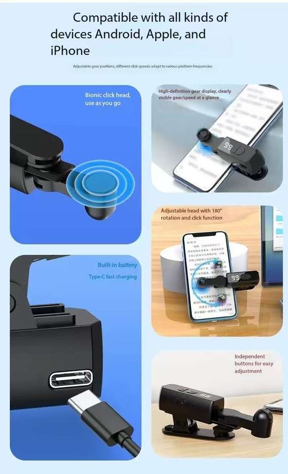 Clicker de pantalla automático de clic rápido portátil, Mini Clicker DE PANTALLA DE TELÉFONO MÓVIL USB, 107 engranajes, Tapper de pantalla física para teléfono