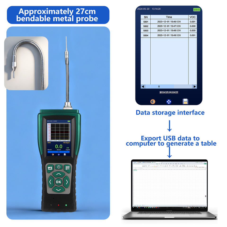 Gas Type:Combustible Gas, Toxic Gas, O2, H2S, CO, NH3, VOC