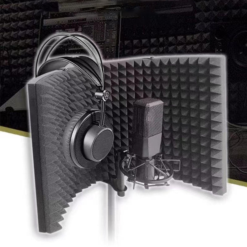 Escudo acústico plegable portátil de 3 paneles-Filtro de aislamiento de micrófono de estudio para reducción de ruido