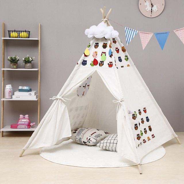 Tienda de campaña plegable portátil para bebés, juguete suave, bonita casa de juegos India para niños, tipi triangular de algodón de lona, tipi de juego para niños al aire libre