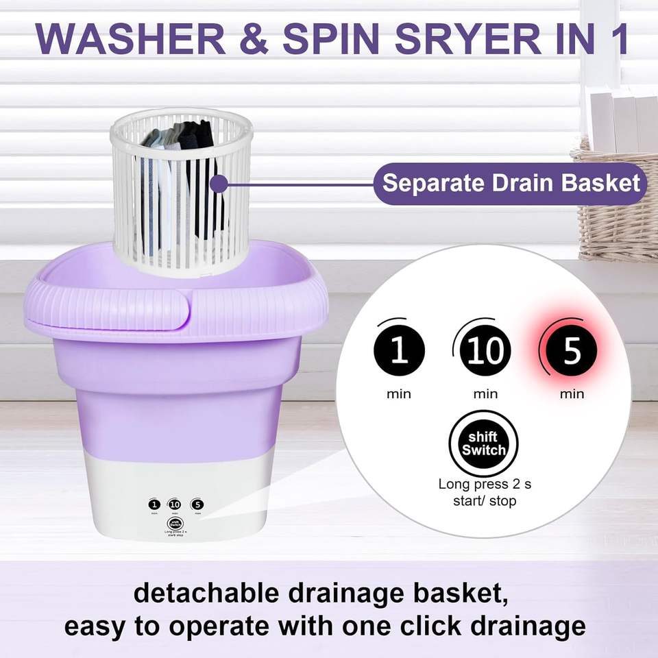 Lavadora plegable portátil con secadora giratoria automática Mini ropa interior lavadora de calcetines con centrífuga 6L de gran capacidad