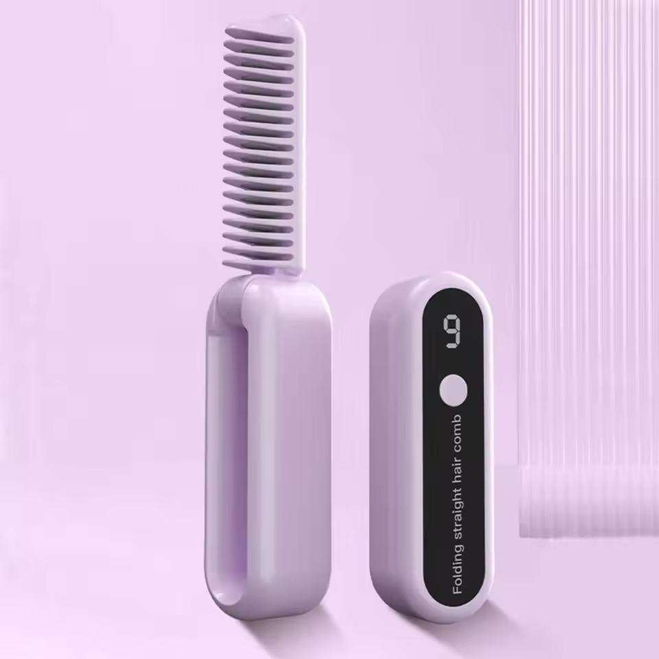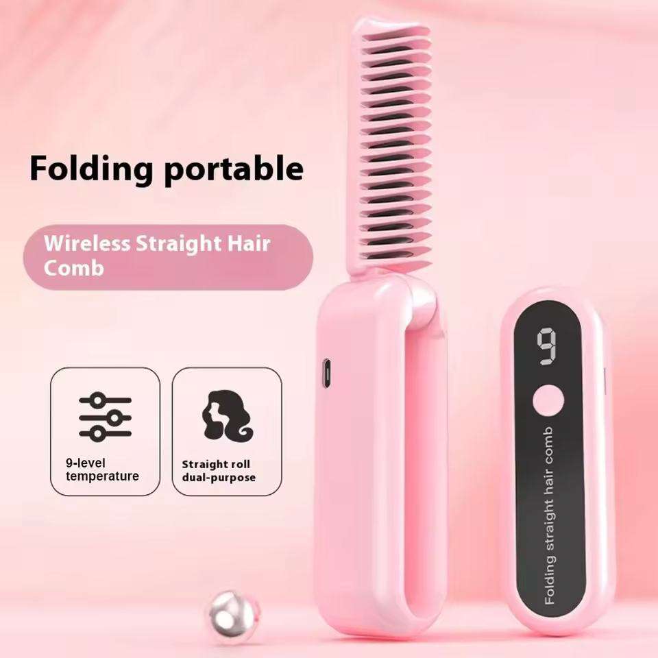 Cepillo directo inalámbrico plegable portátil, peine de iones negativos para el cabello, peine eléctrico sin daños para cabello liso y rizado para mujeres