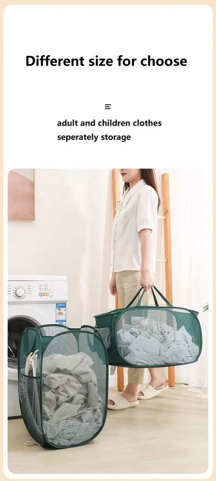 Cesto de Ropa Plegable Portátil con Asa, Cesta de Lavado de Malla, Conveniente y Fácil de Transportar