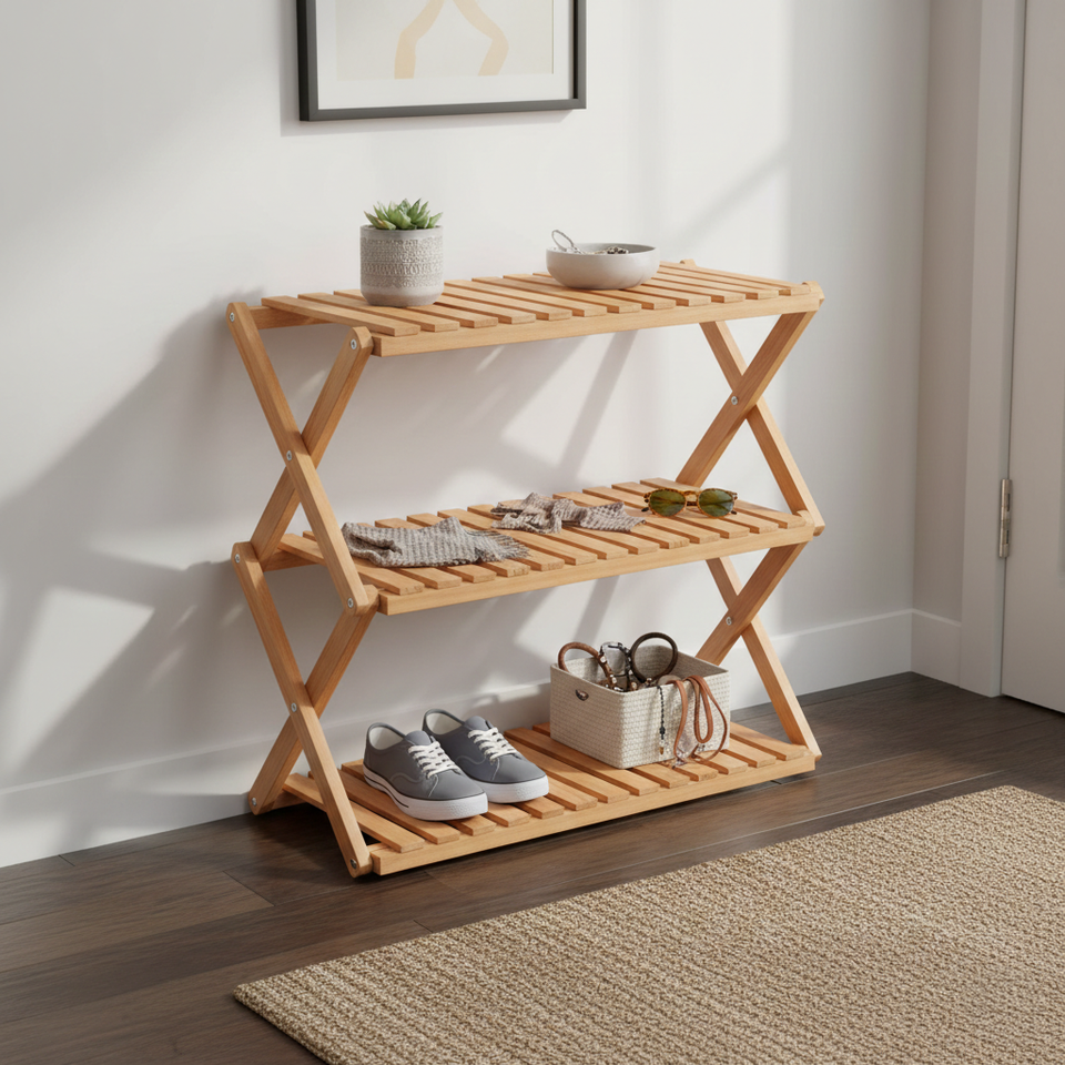 Zapatero Portátil Minimalista de 3 Niveles de Material Radiata para Sala de Estar