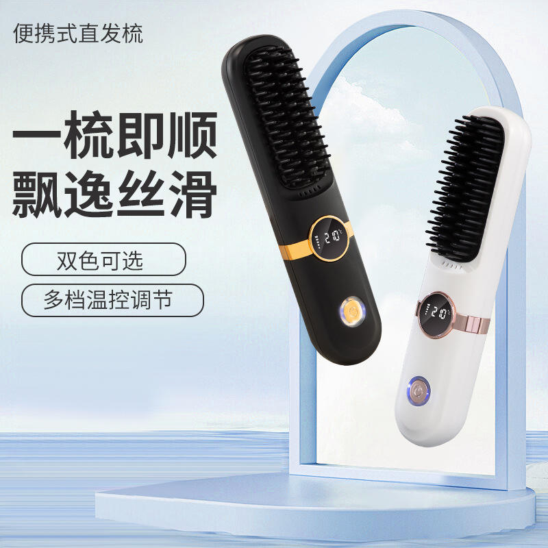 Peine Alisador de Cabello Portátil Recargable con Iones Negativos para Viajes, Cuidado del Cabello Suave, Dientes de Acero Inoxidable