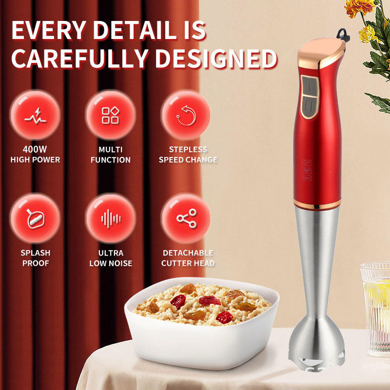 Batidora de Mano Portátil Roja de Acero Inoxidable, Multifuncional, para Preparar Comida para Bebés, Picadora de Carne, Batidora de Varillas para Purés