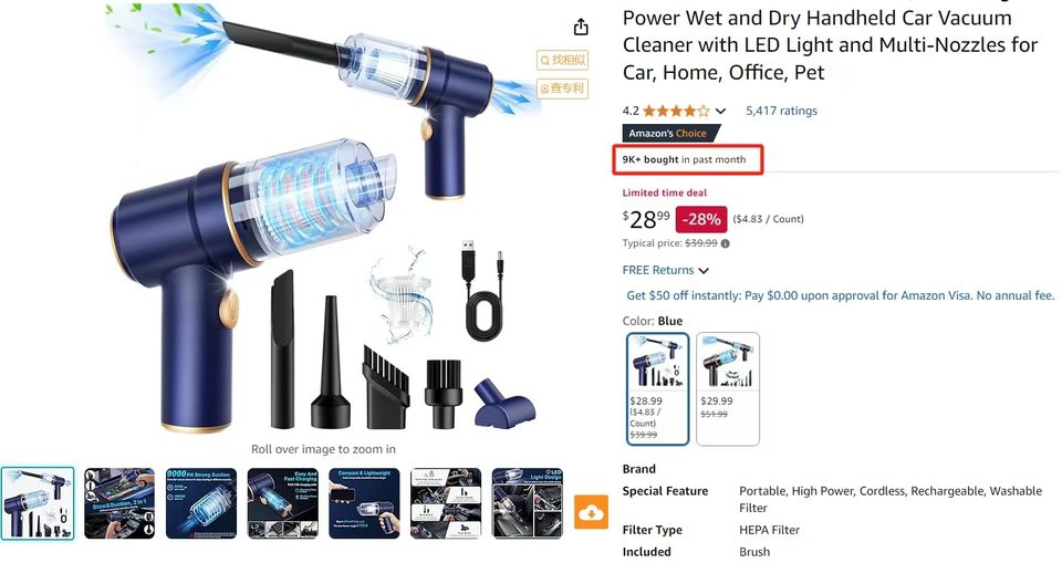 Aspiradora de Coche Portátil Inalámbrica Mini con Luz, Integrada con Función de Soplado y Succión