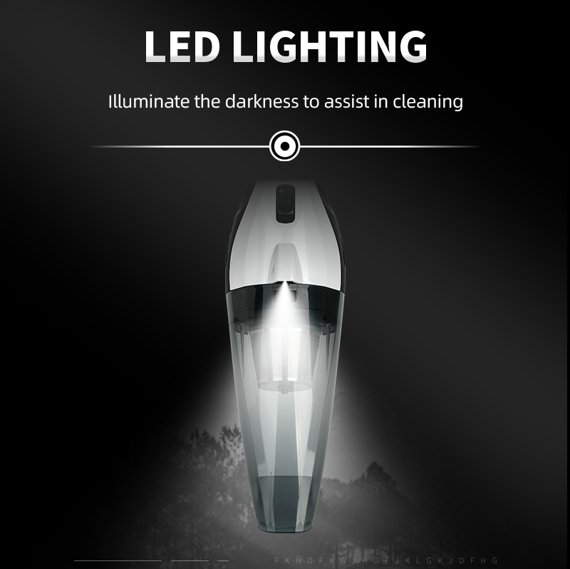 Cable de aspiradora portátil de mano para coche con cable con luz LED 6000Pa potente aspiradora ligera de 12V para limpieza de coches