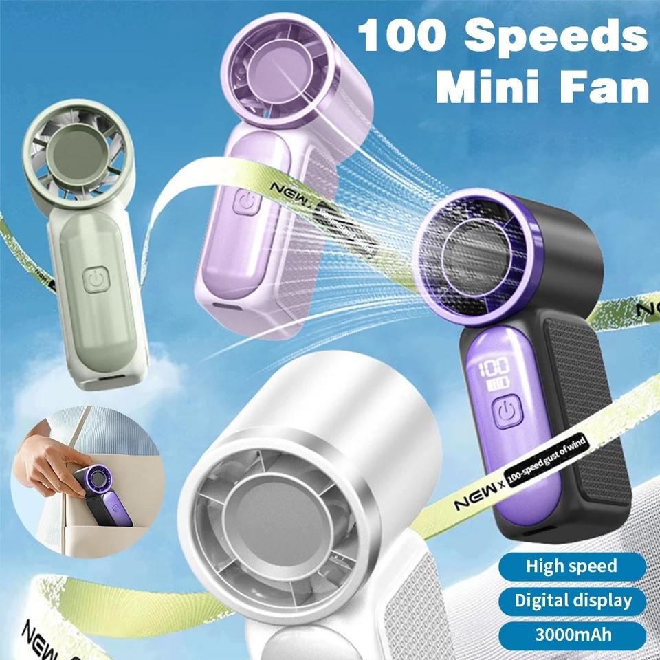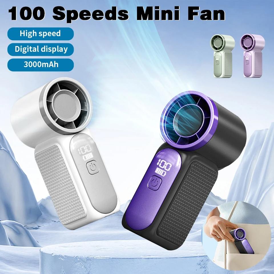 Ventilador portátil de mano, ventilador de bolsillo personal, dispositivo de refrigeración con pantalla digital de 100 velocidades, para niñas, mujeres, niños, conciertos al aire libre