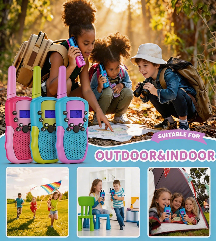 Radio Bidireccional Portátil, Walkie Talkie FM de Largo Alcance, Resistente al Agua, Receptor de Emergencia, Diseño de Dibujos Animados con Patrón de Rayas, Juguete